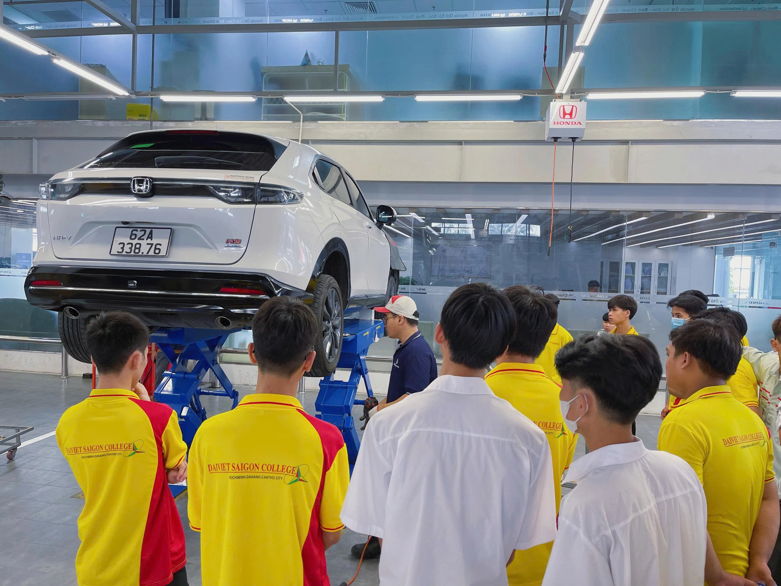 Với phương châm “Học đi đôi với hành - Học gắn với doanh nghiệp”, sinh viên DVE không chỉ tiếp thu kiến thức lý thuyết trên giảng đường mà còn được “lăn xích” ngay trong các hãng lớn như Mercedes, Toyota, Honda…